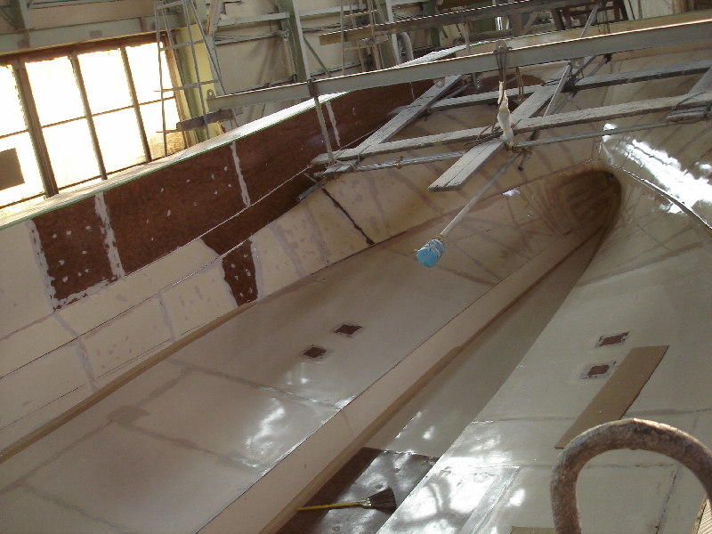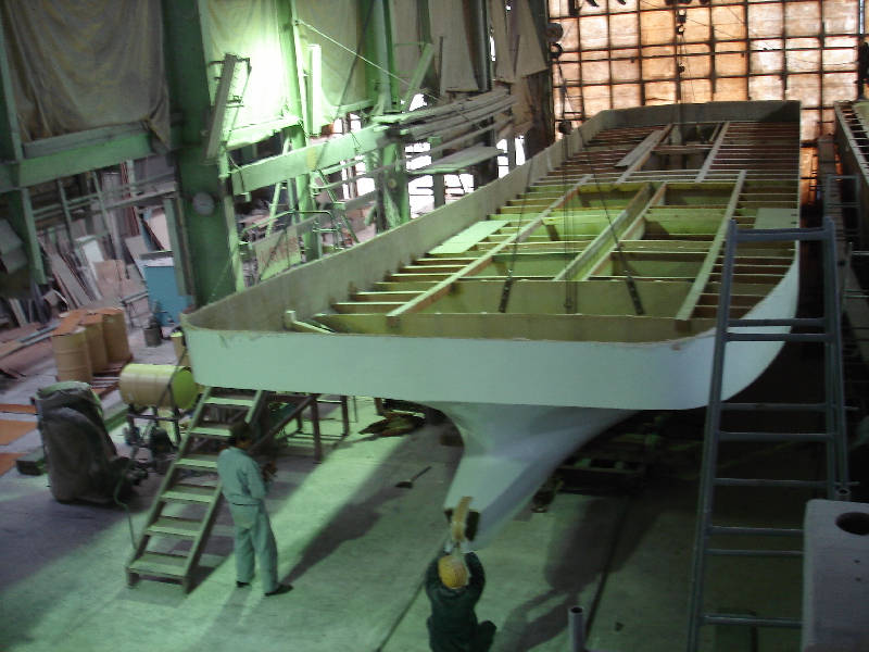 宝立丸、船体積層終了、ロンジ入れ状況